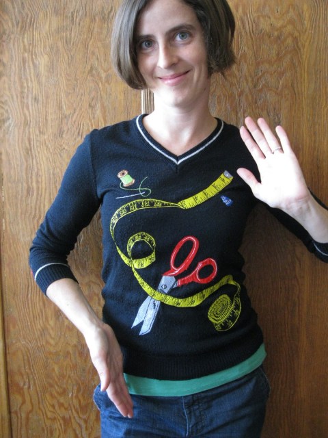 It’s by Taurus II, an 80’s brand I come across somewhat regularly, and the pieces are generally black knits, often with gray or white striping and details, and sporty and easy to wear.