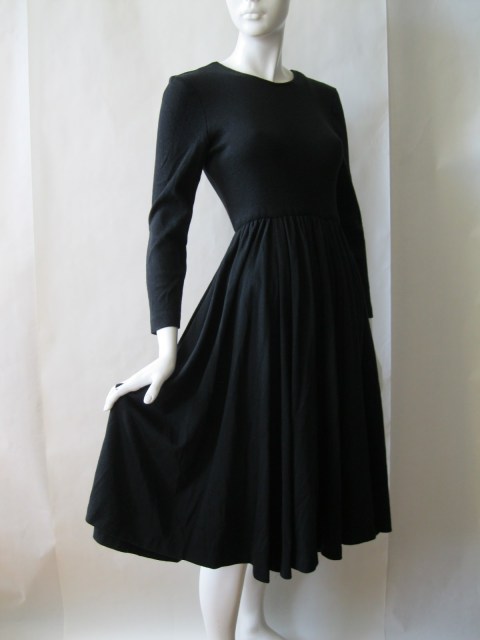 This one has a wonderful very full flowy skirt (when you twirl in it, it swings around in a full circle), hidden hip pockets, a simple bodice, and a perfect waistline. 1980’s channels Audrey Hepburn.
